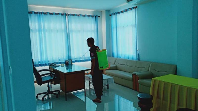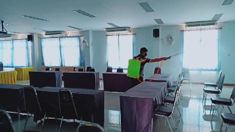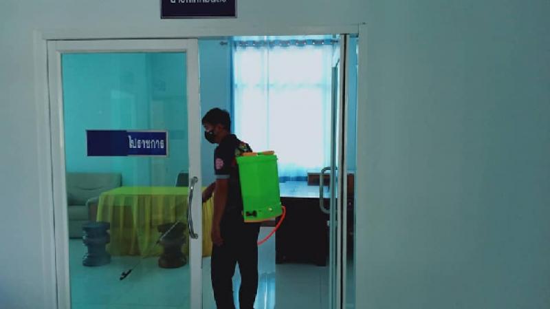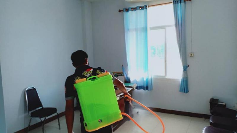 พ่นยาทำความสะอาดสำนักงานเทศบาลตำบลสันมะเค็ด เพื่อสร้างความมั่นใจกับผู้มาติดต่อราชการ (7 ภาพ)