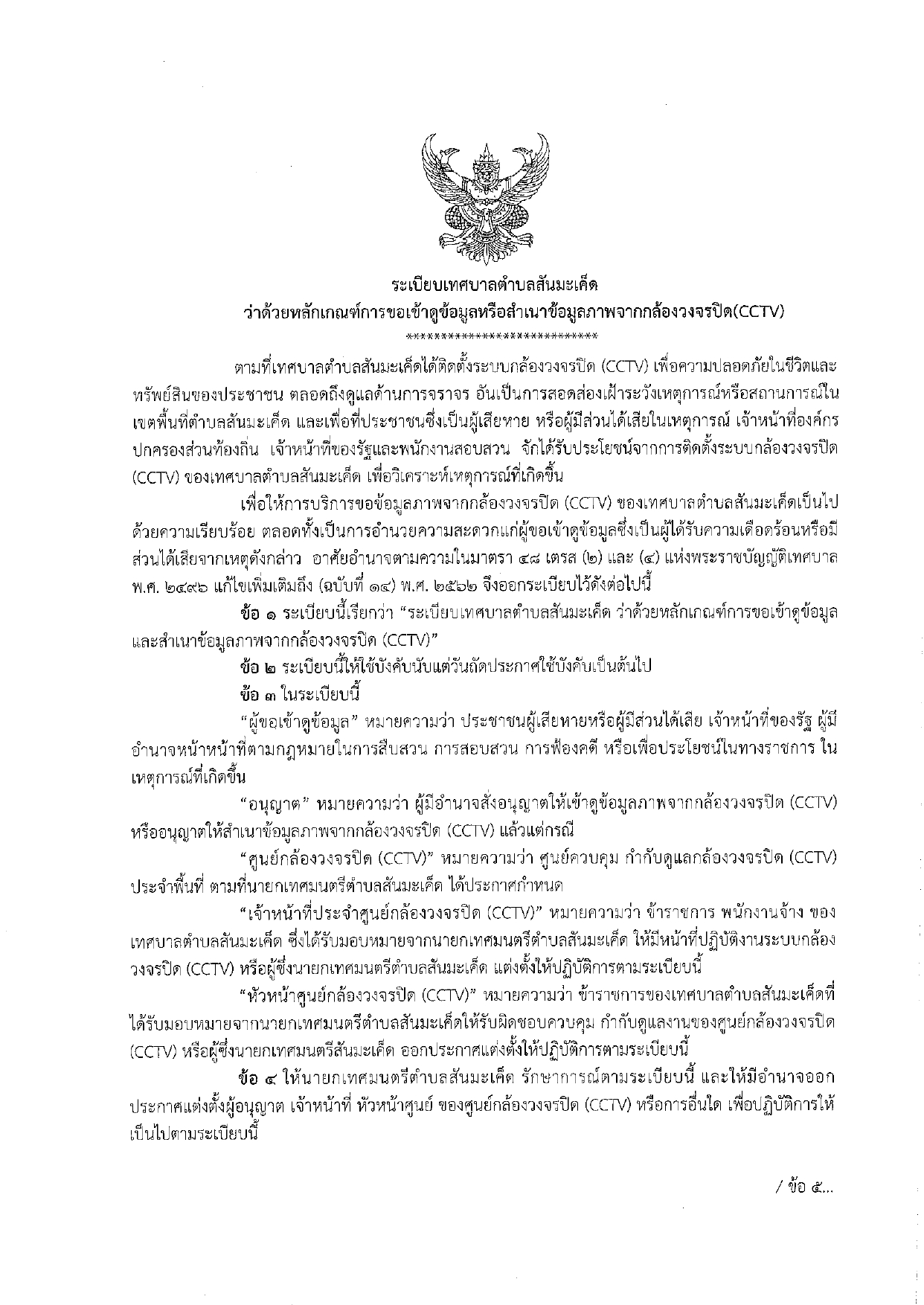 ประกาศเทศบาลตำบลสันมะเค็ด เรื่อง ระเบียบว่าด้วยหลักเกณฑ์การขอเข้าดูข้อมูลหรือสำเนาข้อมูลภาพจากกล้องวงจรปิด(CCTV) เทศบาลตำบลสันมะเค็ด