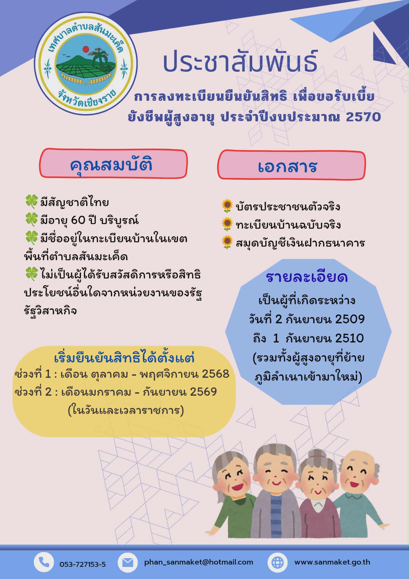 #เทศบาลตำบลสันมะเค็ด #เบี้ยยังชีพผู้สูงอายุ #ลงทะเบียนผู้สูงอายุ2570 #บริการประชาชน